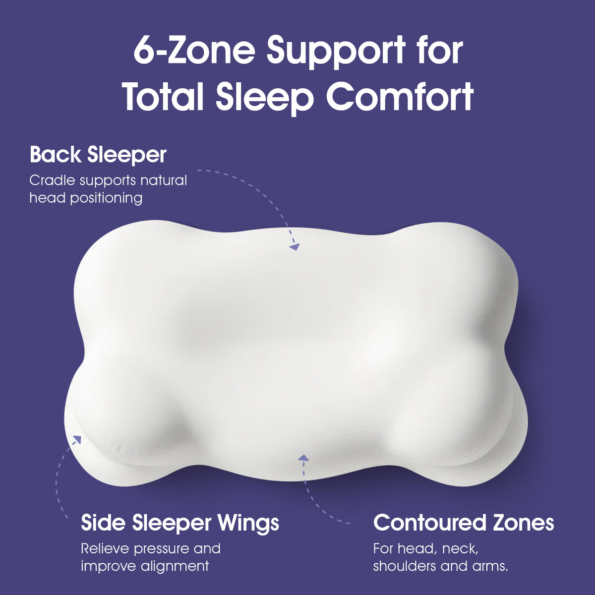 CloudForm's DualAlign™ system gives you dual-height support, ergonomic contour zones, and personalized comfort — without shifting, bunching, or constant adjusting.
